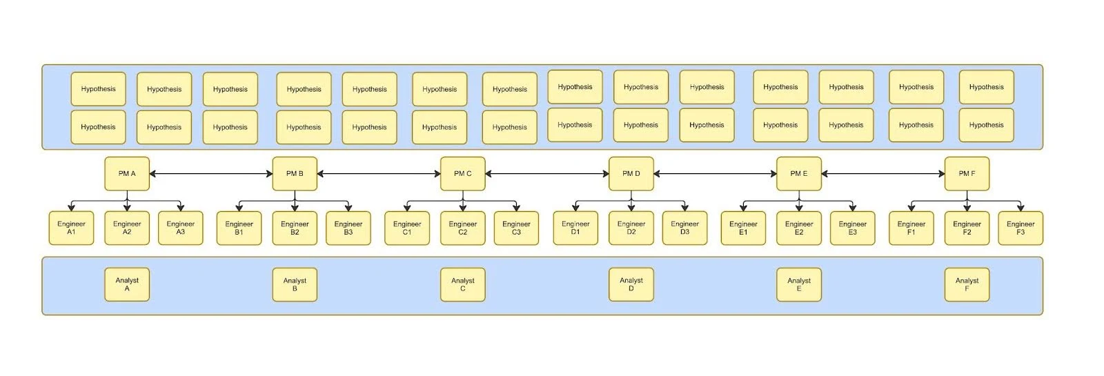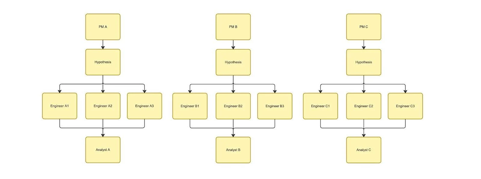 This approach works well for safely shipping new features. But the approach meant experimentation was mostly isolated to the teams that cared about a specific surface. The result? Learnings stayed local, metrics varied from team to team, and we weren’t compounding what we were discovering. Nothing was broken but we weren’t learning as effectively as we could either.